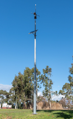 The sensors are 8.5m high, self-powered, unobtrusive, with small footprintsor trenching. The following photo shows an example of a completed installation in Victoria, Australia.